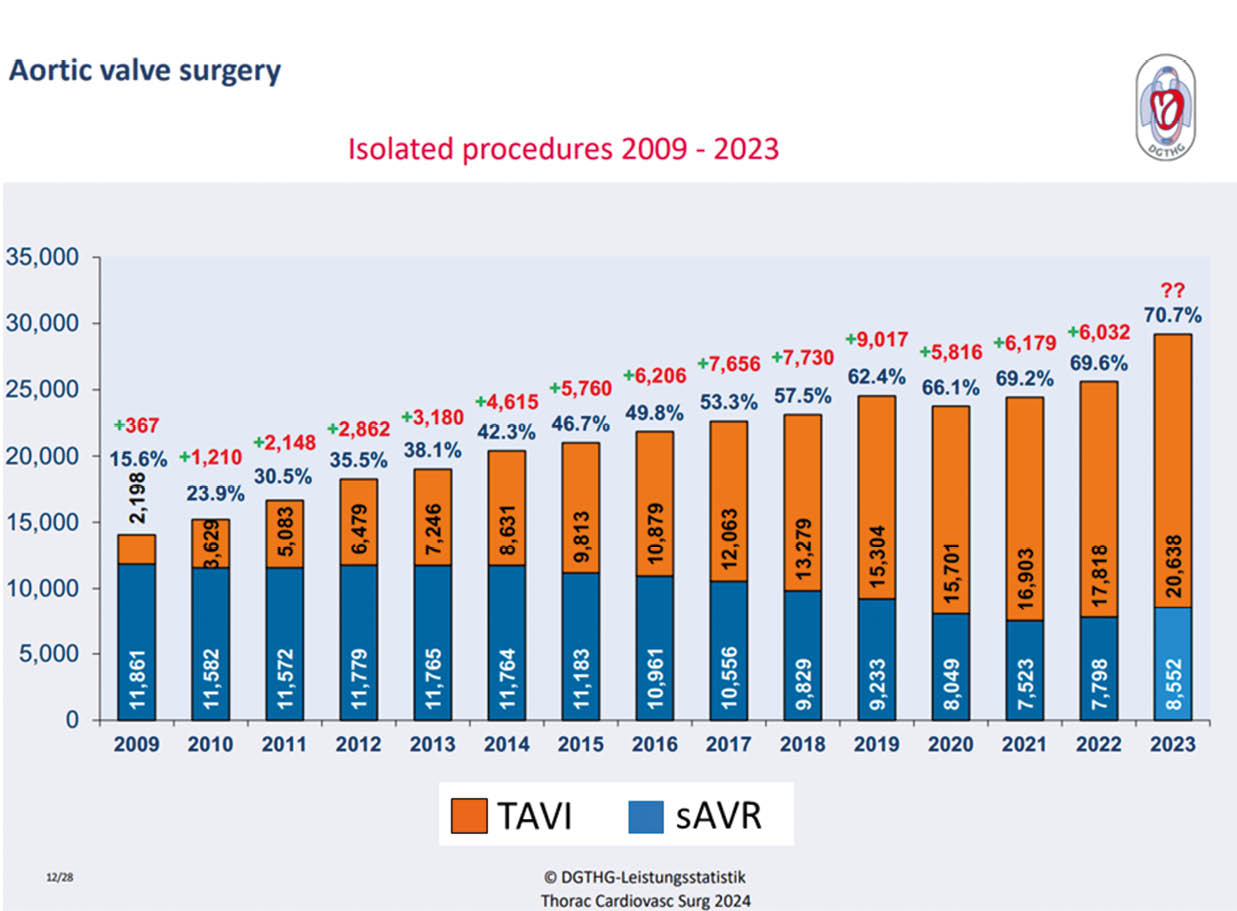 [7] Beckmann A, Meyer R, Eberhardt J, Gummert J, Falk V. German Heart Surgery Report 2023: The Annual Updated Registry of the German Society for Thoracic and Cardiovascular Surgery. Thorac Cardiovasc Surg 2024;72(5):329–45. https://doi.org/10.1055/s-0044-1787853.