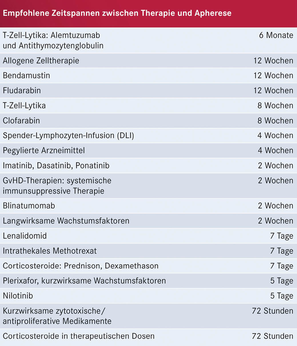 Entscheidend bei diesem Schritt ist die Gewinnung einer ausreichenden Menge von vitalen T-Lymphozyten. Dies kann z. B. durch eine vorangegangene Behandlung mit bestimmten Substanzen (siehe Tabelle 1, S. 16) beeinträchtigt werden (Korell et al. 2020). Ausgehend von den aktuellen und absehbaren Indikationsstellungen für CAR-T-Zellen ergibt sich damit der Bedarf für eine frühzeitige Absprache mit dem CAR-T-Zell-Therapiezentrum um Verzögerungen zu vermeiden.