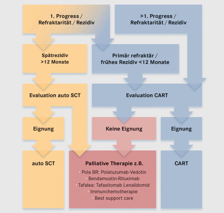 Zusammenfassend besteht die Herausforderung bei der CAR-T-Zell-Therapie neben der Logistik der Herstellung und dem Management der Nebenwirkungen vor allem im frühzeitigen Erkennen der Patienten mit absehbarer Indikation zur CAR-T-Zell-Therapie und der entsprechenden Abstimmung zwischen behandelnden Hämatologen und CAR-T-Zell-Therapiezentrum.