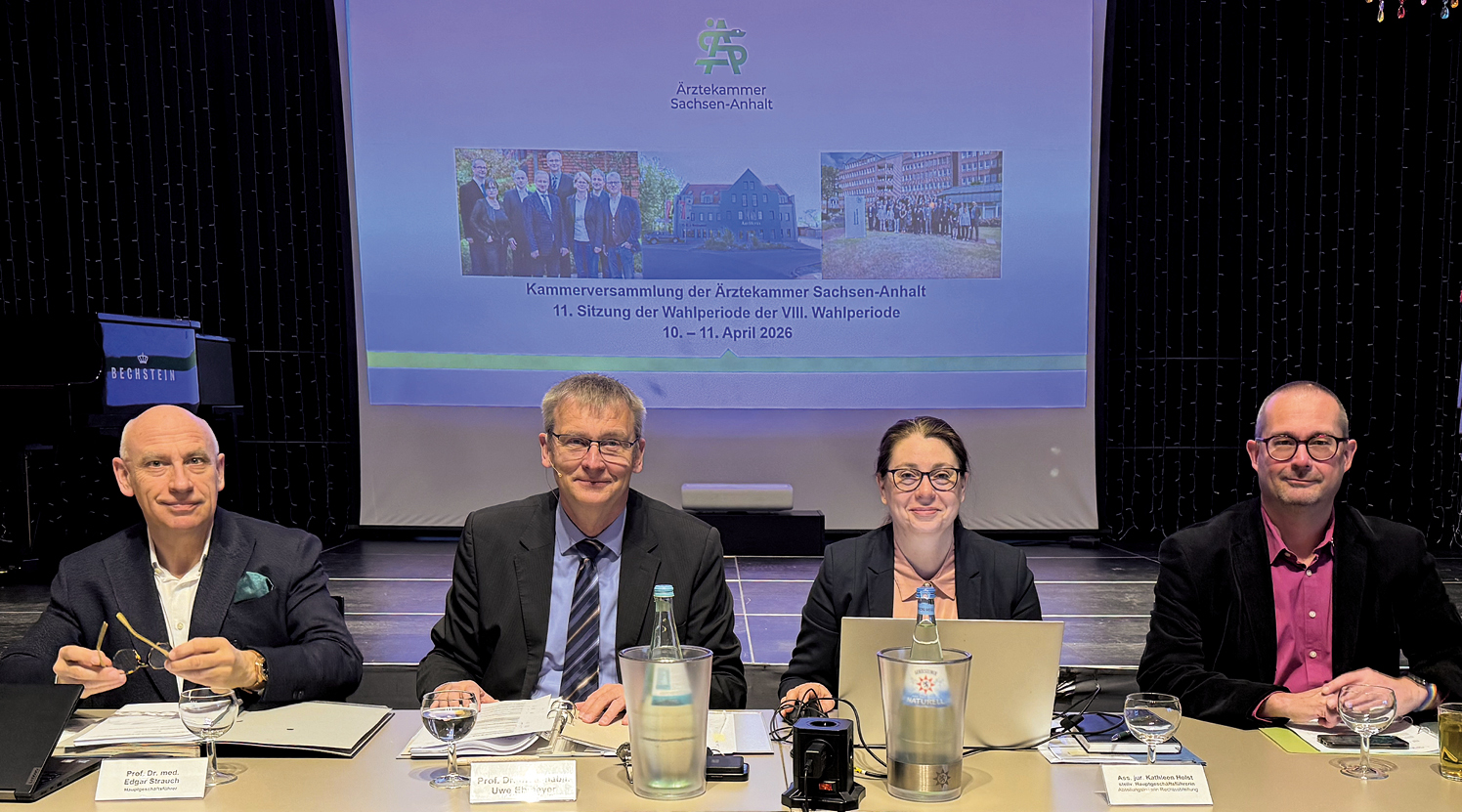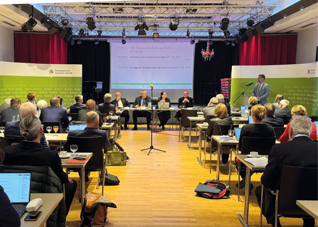 Darüber hinaus sollen Anträge, die unter anderem aus den Reihen der Delegierten vorgeschlagen und intensiv diskutiert wurden, vor Ort eingebracht werden. Die Themen: ein zentrales und gemeinsames Approbationsregister, um das Risiko einzudämmen, dass Informationen zum Beispiel bei einem Wechsel des Landes oder Bundeslandes verloren gehen; KIM-Anbindung von Behörden für eine unbürokratische Übermittlung von Kleingutachten oder Befunden – in Sachsen-Anhalt zum Beispiel ans Landesverwaltungsamt; einheitliche Rahmenbedingungen für Verbundweiterbildungen; eine Aktivrente auch für Freiberufler; Facharztprüfung für alle ausländischen Ärztinnen und Ärzte aus Drittstaaten um z. B. die Qualitätssicherung zu garantieren.