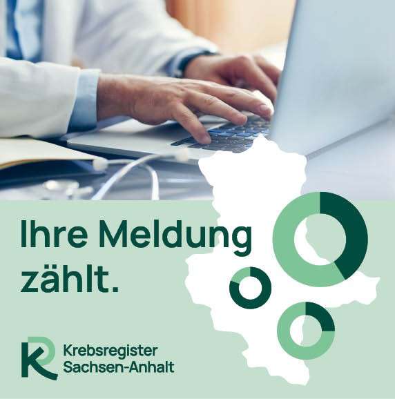 Informationsmotiv des Krebsregisters Sachsen-Anhalt mit Hinweis „Ihre Meldung zählt“ zur ärztlichen Krebsdokumentation.